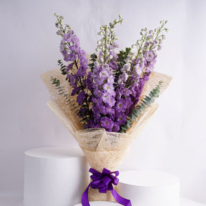Gracefully tall and rich in color, this flower bouquet of delphinium blooms brings elegance and serenity to any space. Known for their clustered purple blooms, delphiniums symbolize dignity, positivity, and beauty. A perfect flower bouquet for celebrations, gratitude, or heartfelt gestures.