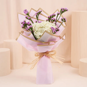 اطلب الآن بوكيه ورد هيدرانجيا بيضاء بتنسيق راقٍ داخل غلاف وردي أنيق، يُعبّر عن النقاء والرقي، مثالي للمناسبات الراقية والهدايا الفاخرة من اف ان بي السعودية.
